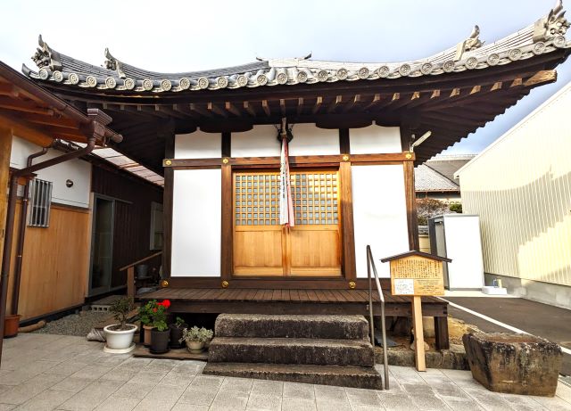 古市城跡から、西の方向に10分程進んで行くと横井町が管理されているお堂があります。前身は、飛鳥時代に小野妹子が旅の安全祈願の為に建立したと伝わる満願寺薬師堂に到着。横井廃寺(小野寺)跡とも言われます。