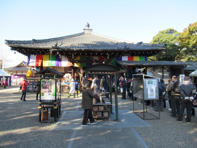 本堂ご本尊の十一面観音立像(重文、奈良時代)が、がん封じのご本尊とされています。がん封じの祈祷を受けるため、本堂前には行列ができていました。いかにがんが恐れられているかが分かります。
