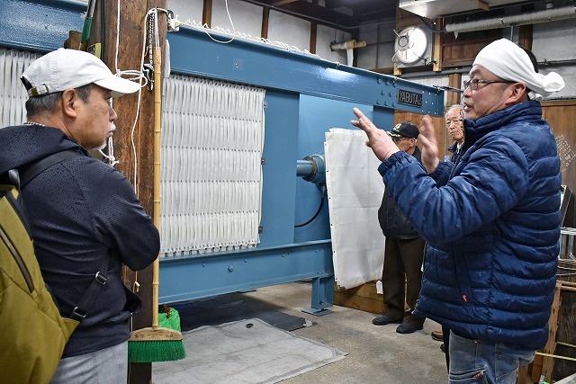 蔵前で全員が合流したところで、大倉本家酒造代表取締役大倉隆彦氏に迎えられ、明治29年創業の老舗の酒蔵に入れていただきます。