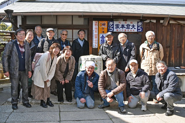 啓発サークル主催の第2回酒蔵見学は、令和8年2月21日(土)、香芝市にある大倉本家酒造を訪れました。朝、JR五位堂駅と近鉄当麻寺駅の2班に分かれて集合。当日キャンセルになった1人を除き、各班7人ずつ計14人がそれぞれ歩いて酒蔵に向かいます。