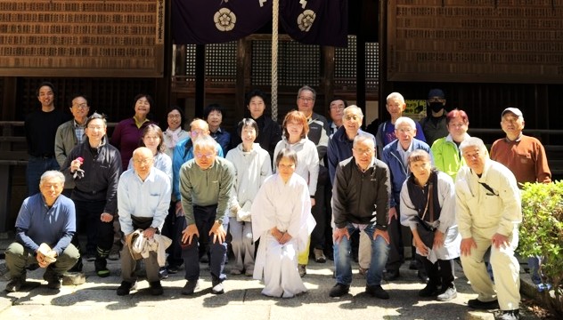 宮司さんと地域プロジェクトのスタッフの方々にも入ってもらい、参加者全員で記念写真