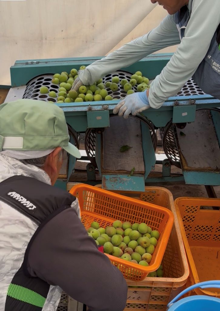 何度か梅の花を見に行ったこともある月ヶ瀬梅林。そんな月ヶ瀬梅林で実った梅を使って、今年は初めて梅干し作りに挑戦してみることにしました。実はあまり梅干しが好きではないのですが、自分で作ってみれば印象も変わるかもしれません。まずは梅を手に入れるために月ヶ瀬へ。偶然出会った農家の方に声をかけると、ありがたいことに梅の実を分けていただけました。おまけも含めて、なんと5キロ。プロが選んだ採れたての梅ですから、もうそれだけで美味しい梅干しができる予感がします。