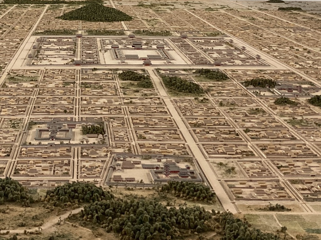 藤原京造営の頃、中国では唐に変わって則天武后が治める時代で、則天武后は古代の周に傾倒し国号を周(武周)としました。その周の京は、古い『周礼(しゅらい)』の記載で京域の真ん中に宮殿を置くこと理想としています。天武天皇や持統天皇は東アジア圏の盟主的存在である則天武后の理想の都を中国に先駆け、意志を持って日本に造営、実現したのではないでしょうか。705年に則天武后が退き中国は唐の国号に戻されました。その後の時代の平城京や平安京が唐の長安を参考に京域の北側に宮殿を造営したのは当然のことでしょう。