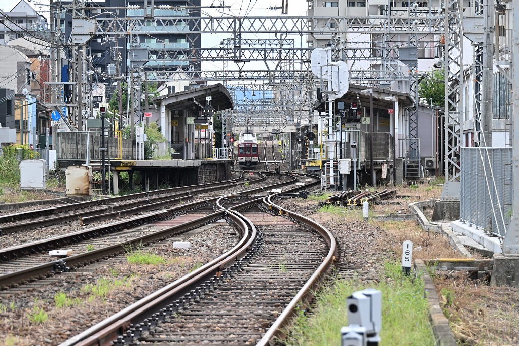もう一つ、規格が異なる路線は「けいはんな線」(“長田‐学研奈良登美ヶ丘”)です。線路幅は1435㎜ですが、直通する大阪メトロ中央線の規格に合わせて、屋根上に電気をとるためのパンタグラフがなく(その分トンネルが小さくでき工事費が安くなる)、台車に取り付けた装置で線路横に設置された設備(三番目のレールという意味で“第三軌条”と言います)から集電します。