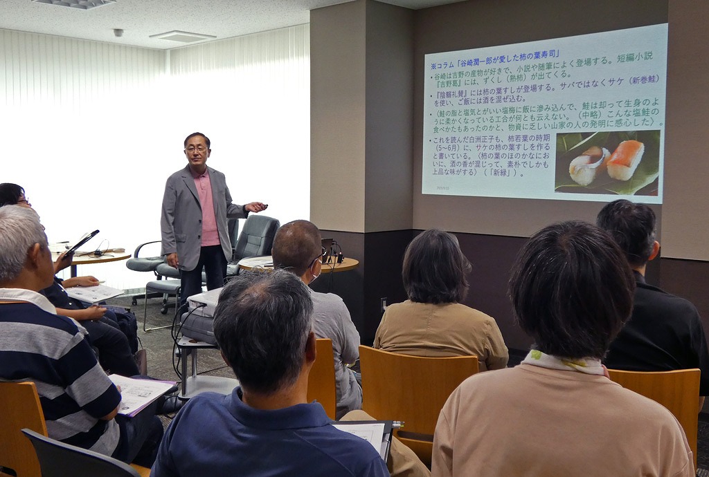 冒頭、講演講座グループ担当の吉田雅幸理事の挨拶のあと、本講座担当の柏尾信尚理事が「基本講座」(60分)、鉄田が「講演事例の紹介」(60分)として「ガストロノミーツーリズム(食をテーマとした旅行)」の話、そして最後に「写真講座」(50分 講師=鉄田)という流れです。