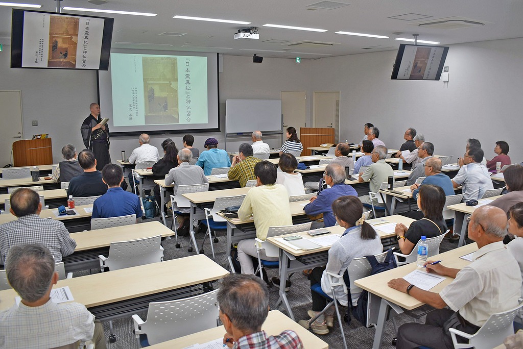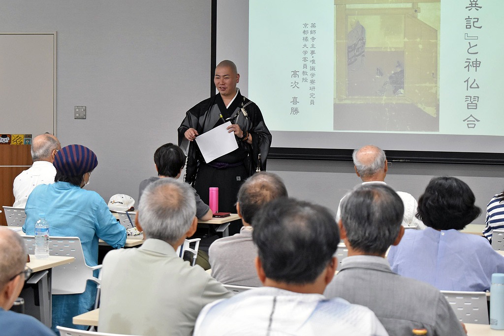 啓発サークルの「自主勉強会」、7月と9月の講師は、薬師寺主事で京都橘大学客員教授の髙次喜勝(たかつぎ・きしょう)さんでした。髙次さんは1987年のお生まれで、今年38歳。申し込みが殺到したため、場所を銀行クラブから南都商事セミナールームに移し、「薬師寺はオンリーワンの宝箱」(7/19)、「『日本霊異記』にみる神仏習合」(9/13)のテーマで、楽しくパワフルにお話しいただきました。