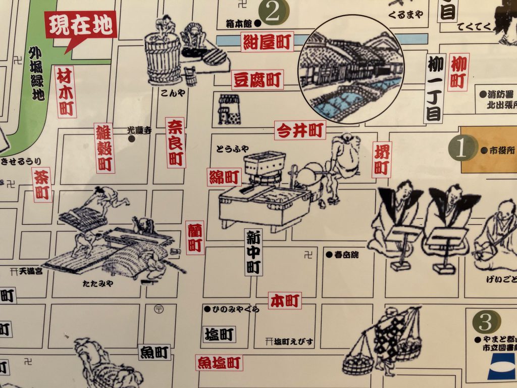さらに、こんな話も若林さんから伺いました。江戸時代の話ですので本書には出ていませんが、今井町の「惣年寄」ナンバー2だった尾崎家(塩販売業。大地主で大名貸もした)の支店が、江戸にありました。それが1657年の「明暦の大火」で焼け落ち、苦境に立たされます。しかし今井町を治めていた代官からは、「そのまま、惣年寄の職を継続して良い」とのお達しがあったそうです。全く今井町は、知れば知るほど面白いです。