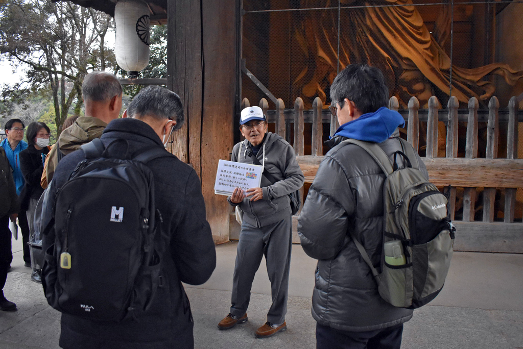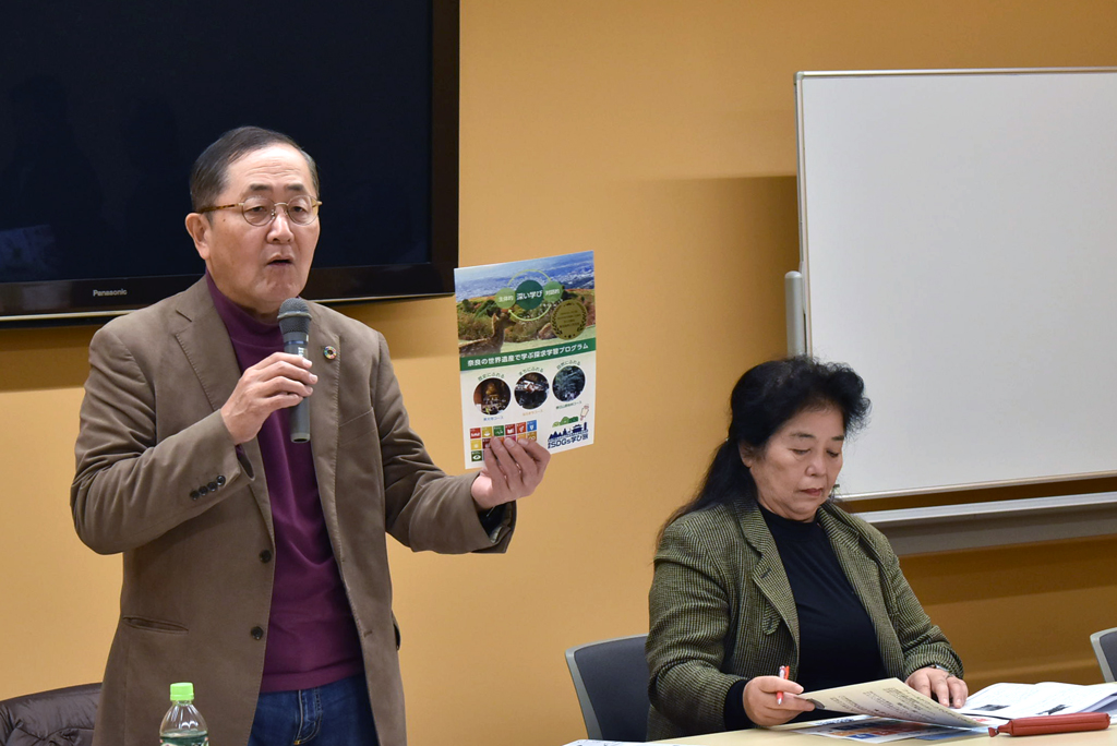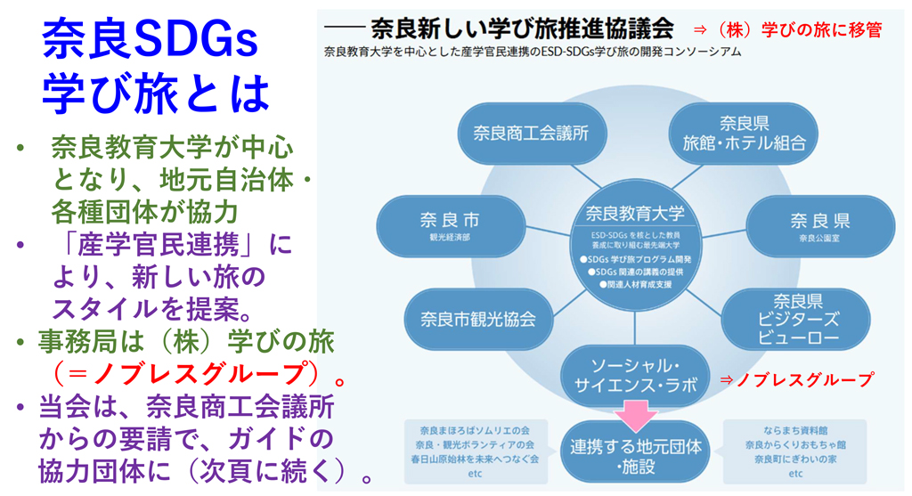 25年12月17日(水)、「SDGs学び旅」に関する再研修を実施し、座学に21人、ガイド実習には20人に参加していただきました。SDGs学び旅とは、奈良教育大学や奈良商工会議所が中心となって発足した事業で、2021年(令和3年)にスタートしました(事務局=株式会社学びの旅)。当会は初年度から、ガイドとして協力しています。
