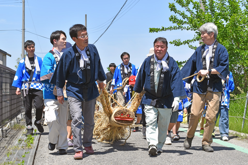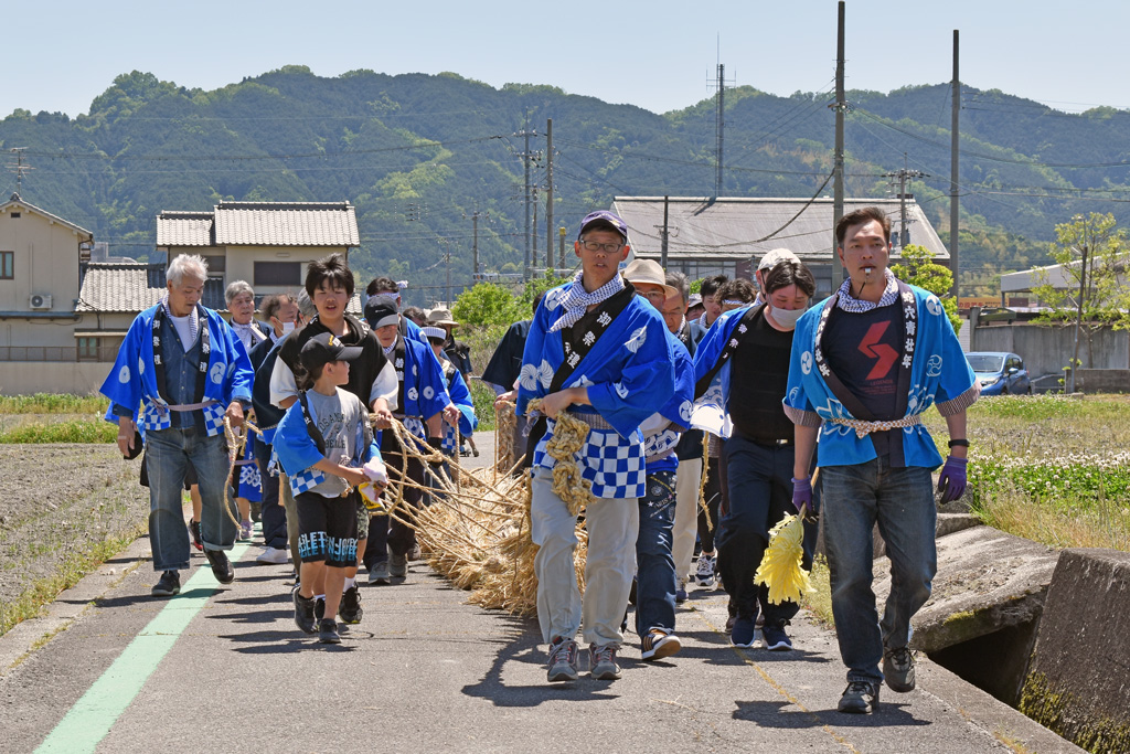 写真は、御所市蛇穴(さらぎ)野口神社の「汁かけ祭り」です。このお祭りのメインは、縄で作られた大蛇です。主役となる大蛇の「顔」は、必ず写し込まなければなりません。そうしないと全く迫力のない写真になります。