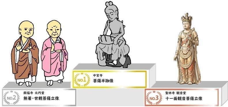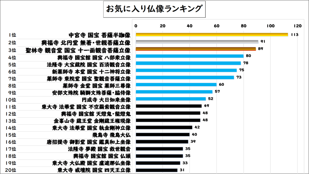 奈良好き・歴史好きの奈良まほろばソムリエの会のメンバーが「実際に仏像を見た」と答えた投票がほとんどでしたので、投票内容の信頼性は高いと思います。