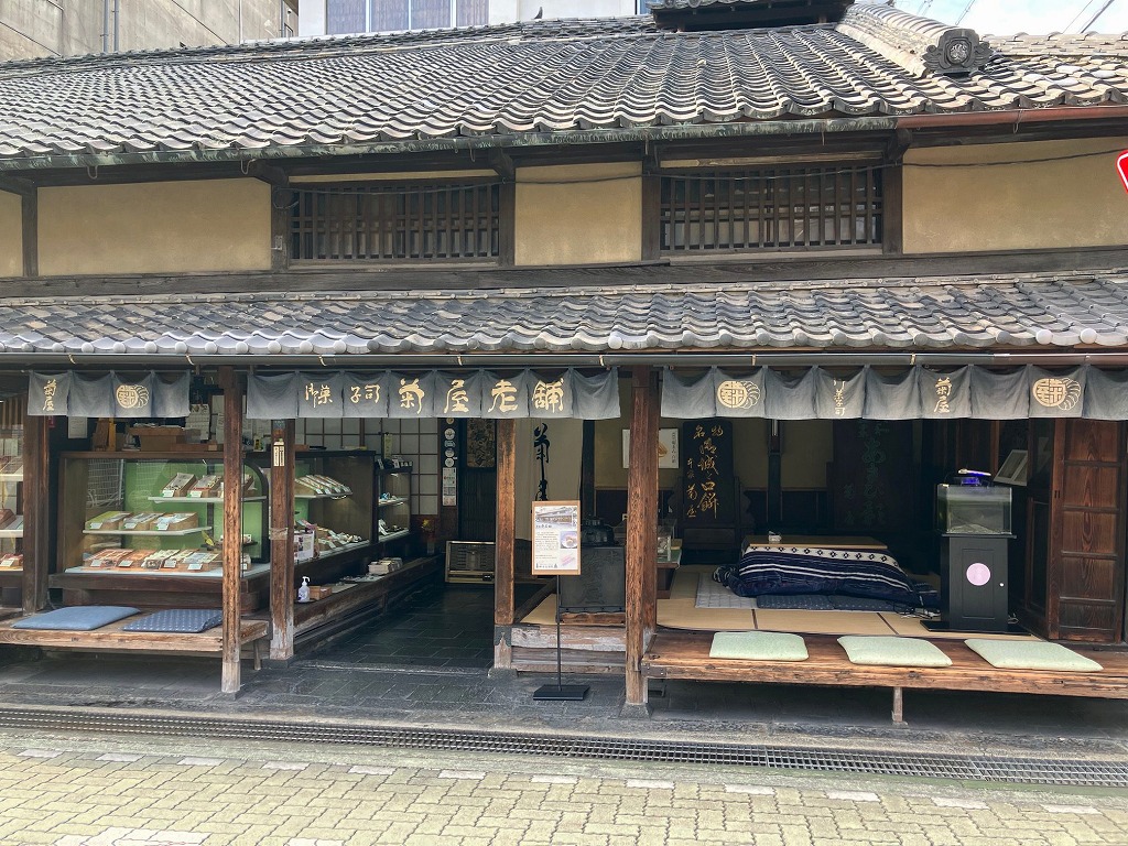 秀長公は折に触れ茶会を催しており、入城間もないころ開催したと思われる兄の秀吉を迎えての茶会では、入城の際に連れてきたとされる菓子職人菊屋治兵衛(じへい)にひとくちサイズの餅菓子を献上させました。秀吉はその餅をたいそう気に入り「鶯餅(うぐいすもち)」と名付けたのが、本家菊屋の銘菓「城之口餅」の始まりです。