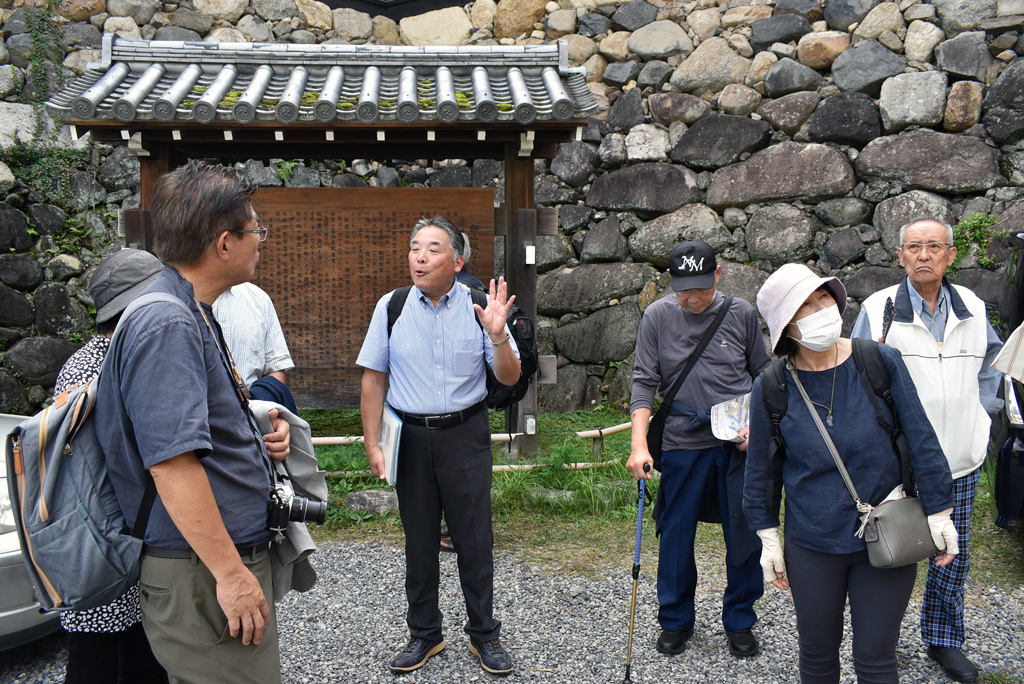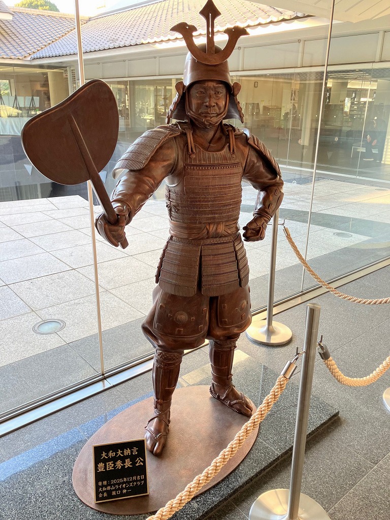 ランチの後は、当会会員の森本泰広さん(大和高田市文化財ボランティアガイドの会会長)のご案内で、大河ドラマ『豊臣兄弟!』で注目を集める郡山城跡と城下町郡山を散策しました。奈良が大河の舞台になるのは、1971年(昭和46年)の『春の坂道』以来とあって、地元は盛り上がっていました。