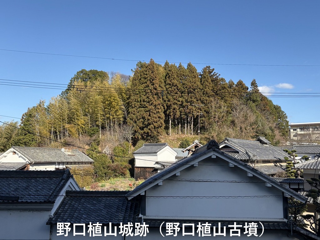 ちなみに、高松塚の近くにも平田城跡があります。高松塚壁画館から北に向かった見晴らしの良い広場が平田城跡と言われています。何の記録もありませんが、郭とおぼしき台地状の広場が数個並んでいます。また、天武持統天皇陵(野口王墓)の道を挟んで東側に野口植山城や野口吹山城があります。ここにある野口植山古墳は額田王の墓と伝わり、額田王の歌碑も立てられています。古代の遺跡のすぐ隣に中世の城跡があるのも飛鳥の面白い魅力かも知れません。(民宿脇本さんに連絡を入れると、野口植山城跡(野口植山古墳)の上までご案内いただけます)