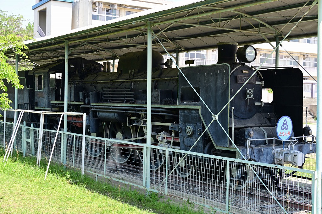 895号機は1944(昭和19)年に製造され、鳥取・福知山などを経て1971(昭和46)年、奈良に配置、関西本線で活躍後、1972(昭和47)年に廃車となり、その後、現在地で保存されています。大和路線で王寺を出て法隆寺駅に向かうとすぐに左側の車窓から見ることができます。