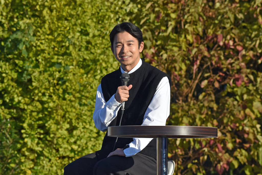 毎年、11月23日(勤労感謝の日)には、高市郡高取町で「たかとり城まつり」が開催されます。25年のこの日には、大河ドラマ「豊臣兄弟!」で主人公の秀長役を演じる仲野太賀さんが登場!会場は、立錐の余地もないほどたくさんのご参加者で埋め尽くされました。