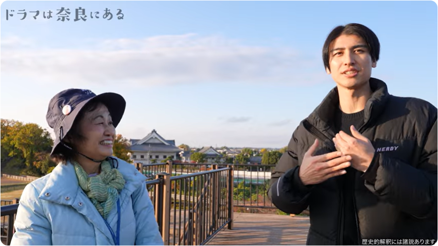 新島さんはYouTubeの「奈良県公式総合チャンネル」にも登場。ガイド役として、奈良県出身俳優・井阪郁巳(いさかいくみ)さんをお相手に、豊臣秀長ゆかりの地を案内されました。